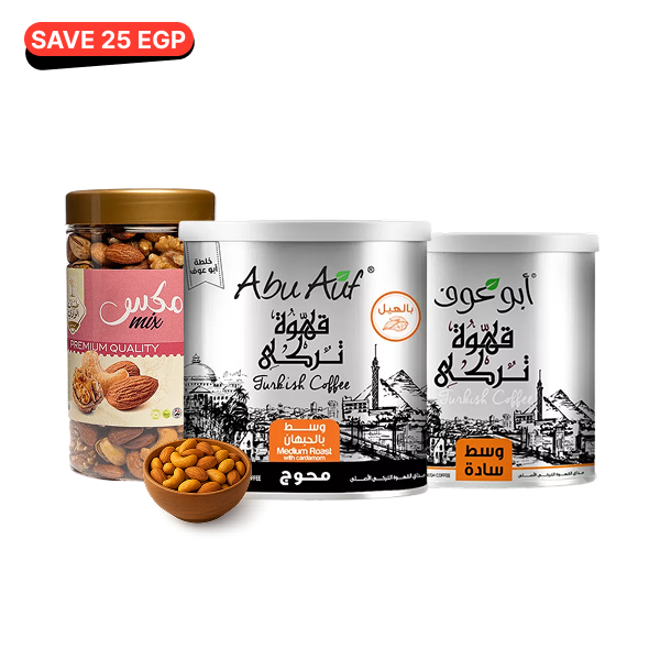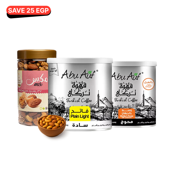 Choose 2 from your preferred Abu Auf turkish coffee with your preferred nuts jar